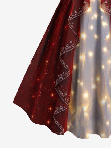 Plus Size Glitter Christmas Light 3D Costume Print A Line Dress - Red - S
