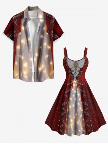 Plus Size Glitter Christmas Light 3D Costume Print A Line Dress - Red - 2x