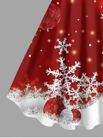 Plus Size Glitter Christmas Snowflake Ball Print A Line Dress - Red - L