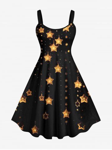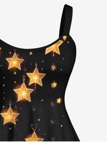 Plus Size Glitter Christmas Stars Light Print A Line Tank Dress - Black - 4x