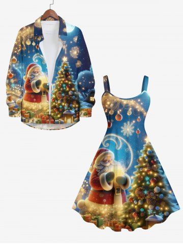 Dresses > Plus Size Glitter Christmas Tree Ball Light Santa Claus Ombre Galaxy Snowflake Print A Line Tank Dress