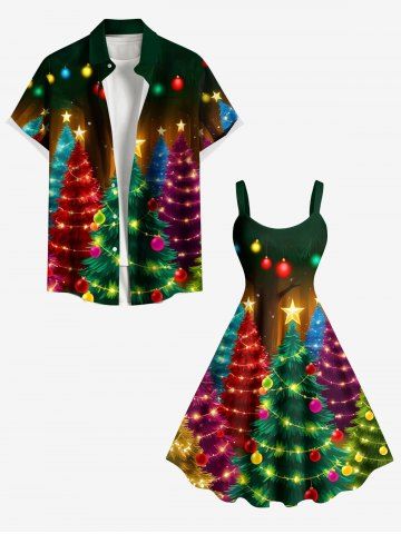Dresses > Plus Size Glitter Christmas Tree Ball Light Stars Print Ombre A Line Dress