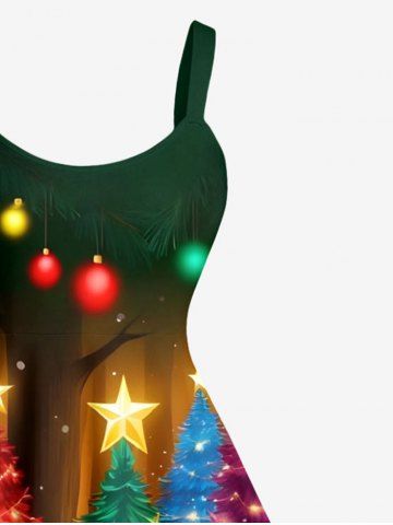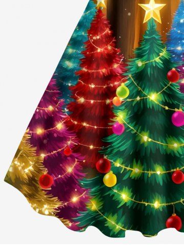 Plus Size Glitter Christmas Tree Ball Light Stars Print Ombre A Line Dress - Multi-a - 6x