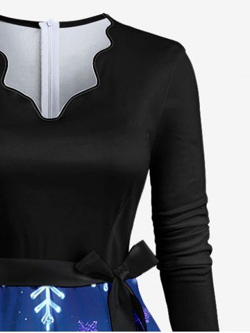 Plus Size Glitter Christmas Tree Ball Snowflake Snowman Print Ombre Lettuce A Line Dress with Tied Belt - Multi-a - 6xl