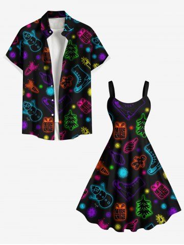 Plus Size Glitter Christmas Tree Light Boots Snowman Print A Line Dress - Black - Xs