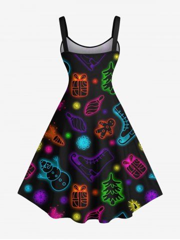 Plus Size Glitter Christmas Tree Light Boots Snowman Print A Line Dress - Black - 4x