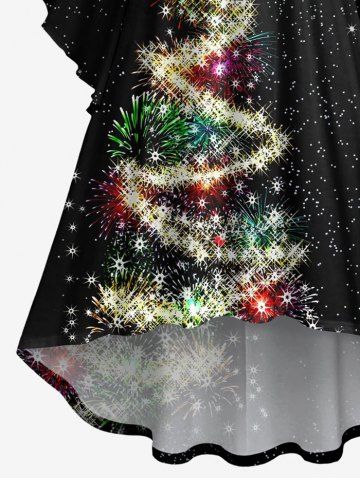 Plus Size Glitter Christmas Tree Light Fireworks Print Ruched High Low Asymmetric Dress - Black - S