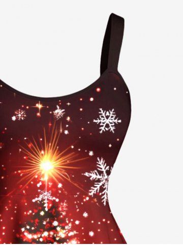 Plus Size Glitter Christmas Tree Snowflake Print Ombre A Line Dress - Red - 2x