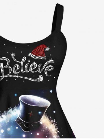 Plus Size Glitter Sparkling Christmas Light Hat Snowman Snowflake Letters Print A Line Tank Dress - Black - Xs