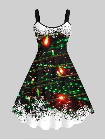 Plus Size Glitter Sparkling Christmas Light Snowflake Print Sleeveless A Line Tank Party Dress - Multi-a - M