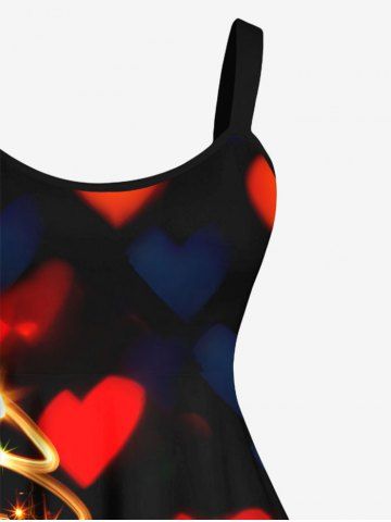Plus Size Glitter Sparkling Christmas Tree Light Ombre Sweet Heart Print A Line Tank Dress - Multi-a - Xs