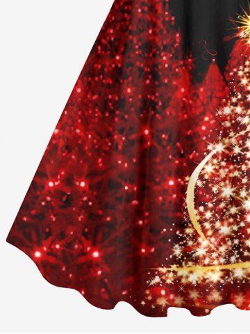 Plus Size Glitter Sparkling Christmas Tree Light Print A Line Tank Dress - Black - 4x