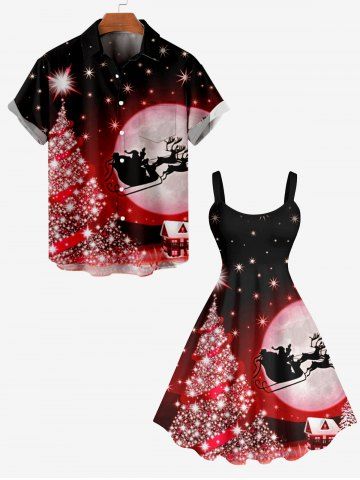 Plus Size Glitter Sparkling Christmas Tree Star Ombre Galaxy Moon Elk Santa Claus Print A Line Tank Dress - Red - S