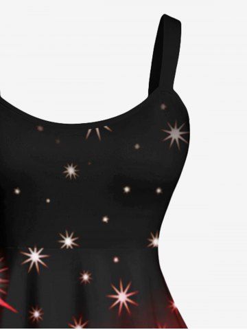 Plus Size Glitter Sparkling Christmas Tree Star Ombre Galaxy Moon Elk Santa Claus Print A Line Tank Dress - Red - 1x