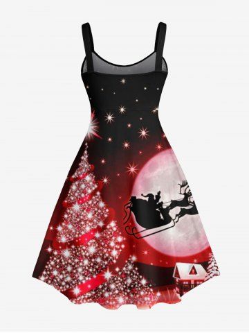 Plus Size Glitter Sparkling Christmas Tree Star Ombre Galaxy Moon Elk Santa Claus Print A Line Tank Dress - Red - 5x