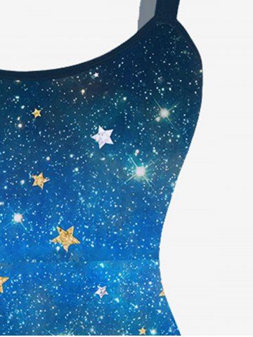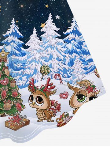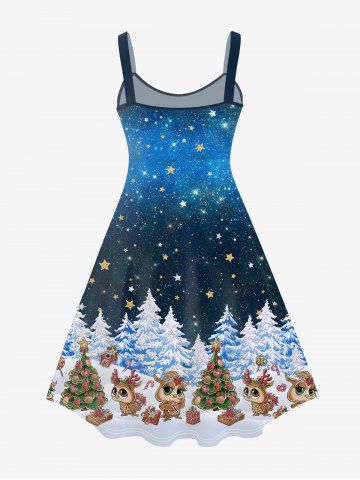 Plus Size Glitter Sparkling Galaxy Stars Christmas Tree Squirrel Gift Box Print A Line Tank Dress - Deep Blue - 5x