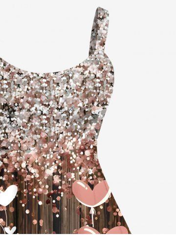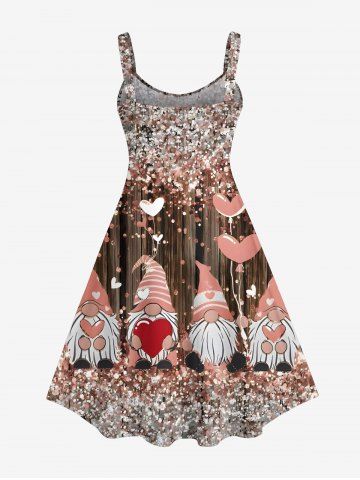 Dresses > Plus Size Glitter Sparkling Sequins Christmas Dwarfs Heart Print A Line Tank Dress