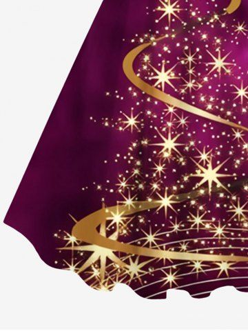 Plus Size Glitter Sparkling Stars Christmas Tree Snowflake Tie Dye Ombre Print A Line Tank Dress - Purple - M