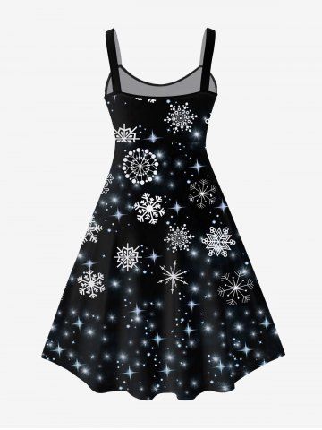 Plus Size Glitter Sparkling Stars Snowflake Galaxy Print Christmas A Line Tank Party Dress - Black - 4x