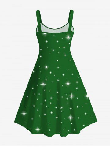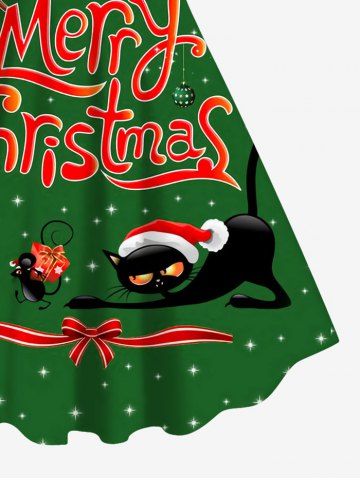 Plus Size Glitter Stars Christmas Hat Ball Gift Box Cat Letters Bowknot Print A Line Party Dress - Deep Green - M