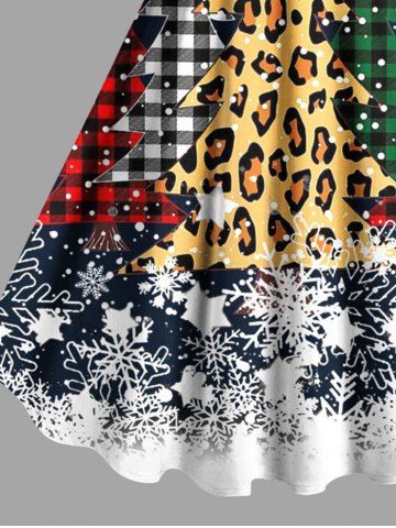 Dresses > Plus Size Leopard Plaid Christmas Tree Snowflake Print A Line Tank Dress
