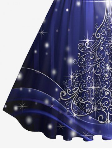 Plus Size Metallic Christmas Tree Glitter 3D Print 1950s Vintage Dress - Midnight Blue - 2x