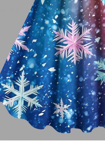 Plus Size Ombre Christmas Snowflake Print A Line Tank Dress - Sky Blue - 5x