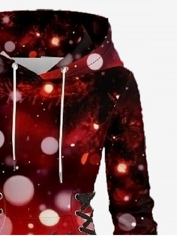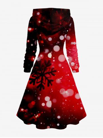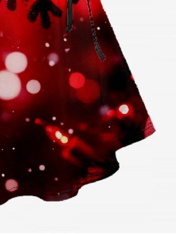 Plus Size Ombre Christmas Snowflake Print Lace Up A Line Hooded Dress - Red - 4x