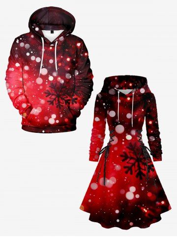 Dresses > Plus Size Ombre Christmas Snowflake Print Lace Up A Line Hooded Dress
