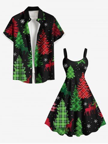 Plus Size Plaid Christmas Tree Snowflake Galaxy Elk Print A Line Dress - Black - S
