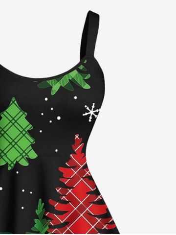 Plus Size Plaid Christmas Tree Snowflake Galaxy Elk Print A Line Dress - Black - M
