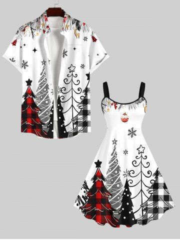 Dresses > Plus Size Plaid Christmas Tree Snowflake Star Elk Print A Line Tank Dress