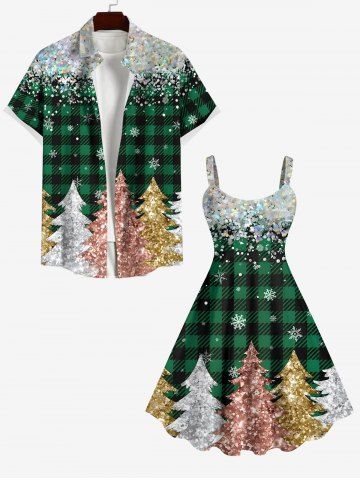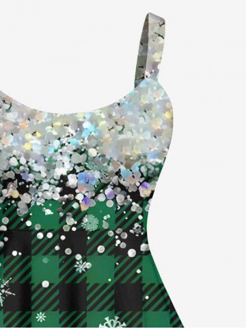 Plus Size Plaid Snowflake Christmas Tree Sparkling Sequin 3D Print Tank Dress - Green - S