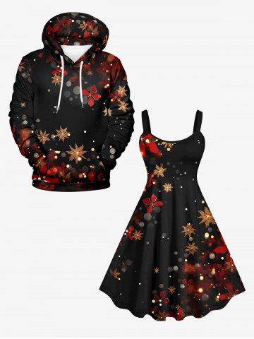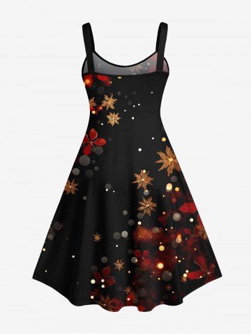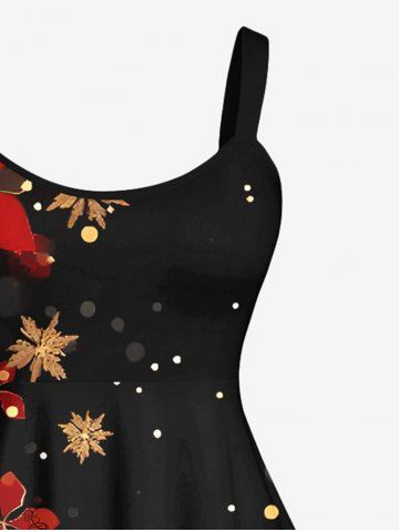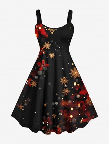 Plus Size Snowflake Floral Glitter Ombre Light Spot Print Christmas A Line Tank Dress - Black - 5x