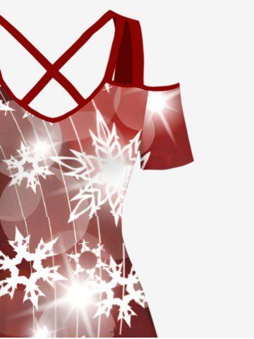 Plus Size Snowflake Glitter Stars Light Beam Curve Print Christmas Ombre Crisscross A Line Maxi Dress - Red - 4x