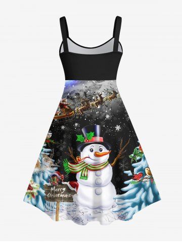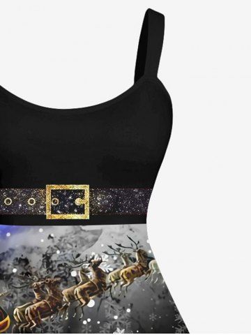 Plus Size Snowflake Snowman Christmas Tree Santa Claus Elk Bird Glitter Buckle Belt Print Ombre A Line Tank Dress - Black - Xs