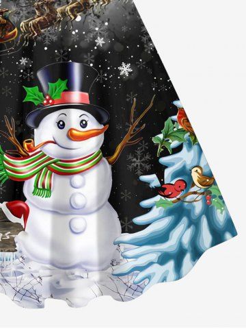 Plus Size Snowflake Snowman Christmas Tree Santa Claus Elk Bird Glitter Buckle Belt Print Ombre A Line Tank Dress - Black - 4x