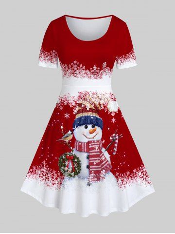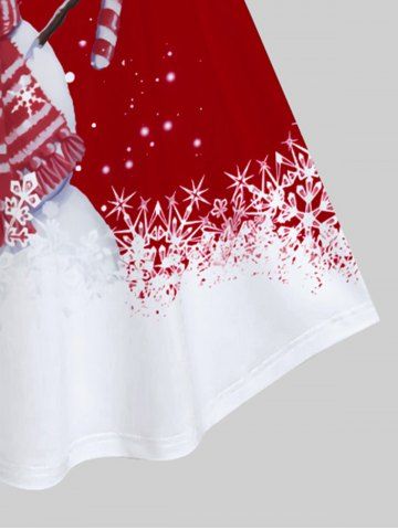 Plus Size Snowflake Snowman Print Christmas Dress - Red - 1x | Us 14-16