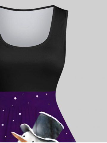 Plus Size Snowman Tree Branch Bird Galaxy Print Christmas Vintage Swing A Line Dress - Black - L