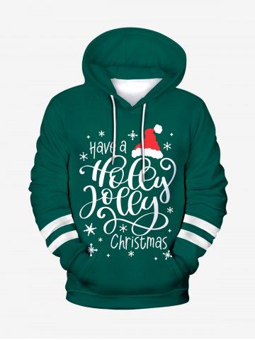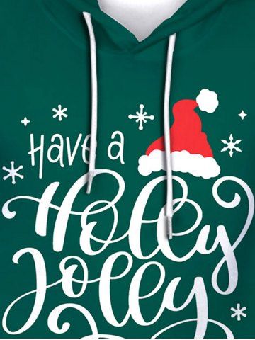 Plus Size Christmas Graphic Kangaroo Pocket Hoodie - Deep Green - 5xl