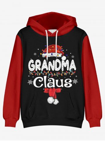 Plus Size Christmas Hat Letters Printed Front Pocket Pullover Hoodie - Red - L