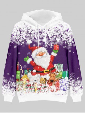 Plus Size Christmas Santa Claus Snowflake Elk Dog Bear Print Drawstring Hoodie - Purple - M