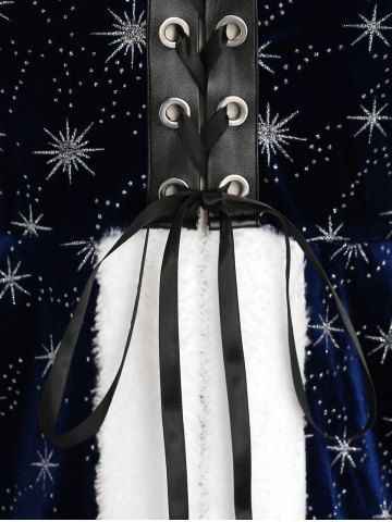 Christmas Plus Size Lace Up Silver Stamping Fur Trim Velvet Coat - Blue - 3x | Us 22-24
