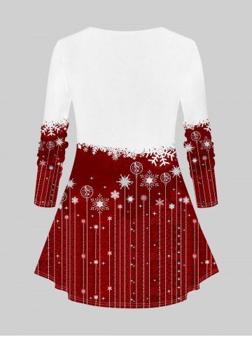 Plus Size 3D Glitter Snowman Snowflake Buttons Print Christmas Long Sleeves T-shirt - Deep Red - S