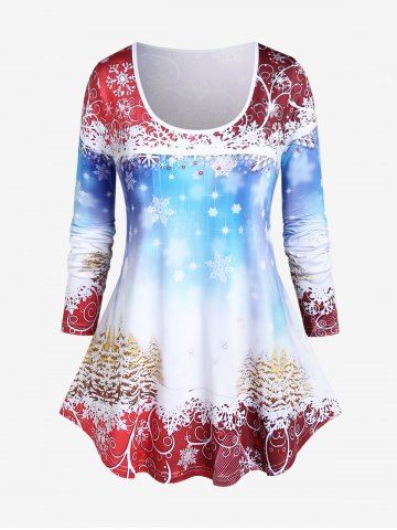m*****i5Plus Size 3D Sparkles Snowflake Tree Printed Long Sleeves Christmas TeeColor: DEEP RED Size: 3X | US 22-24beautiful top, love the colors and the way it lays. the material not so much