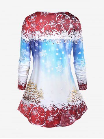 m*****i5Plus Size 3D Sparkles Snowflake Tree Printed Long Sleeves Christmas TeeColor: DEEP RED Size: 3X | US 22-24beautiful top, love the colors and the way it lays. the material not so much