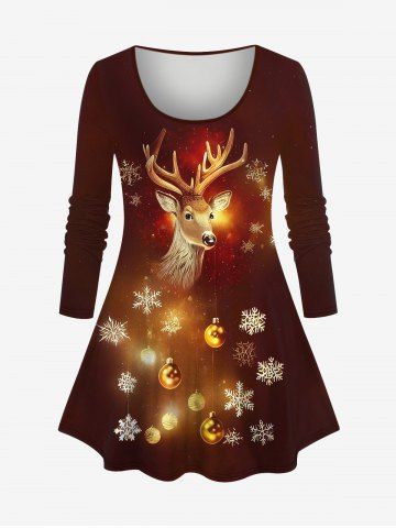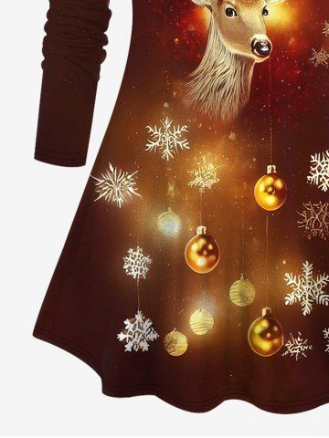 Plus Size Christmas Ball Elk Snowflake Glitter 3D Print T-shirt - Coffee - L