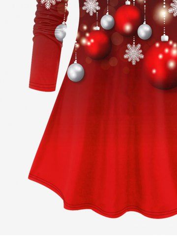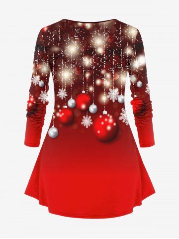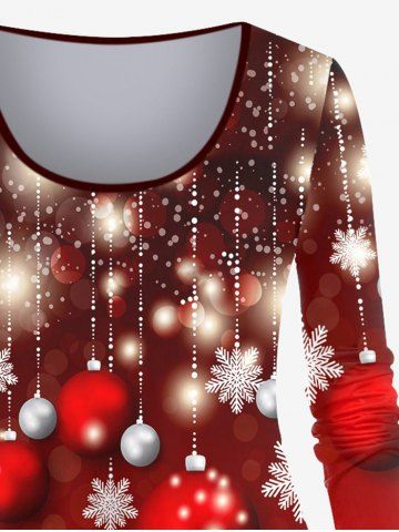 Plus Size Christmas Ball Snowflake Glitter Print T-shirt - Red - M