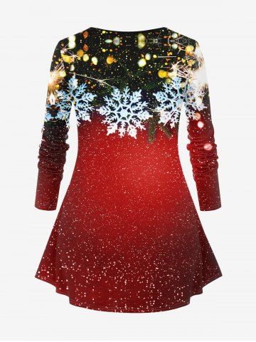 Plus Size Christmas Ball Snowflake Glitter Print T-shirt - Deep Red - 6x