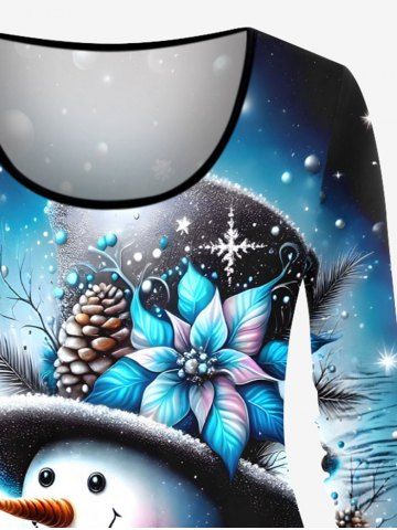 Plus Size Christmas Ball Snowflake Snowman Tie Dye Ombre Print Long Sleeves Women T-shirt - Sky Blue - 3x